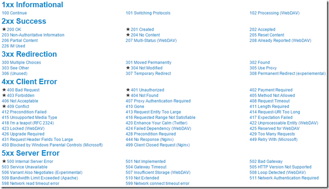 Each Status-Code is described below, including a description of which method(s) it can follow and any meta information required in the response.